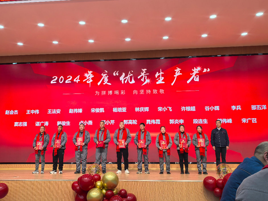 在表彰頒獎環(huán)節(jié),年會現(xiàn)場氣氛達到了高潮。潁川新材料頒發(fā)了年度“突出貢獻獎”、年度“營銷標(biāo)兵”、年度“質(zhì)量技術(shù)標(biāo)兵”、年度“愛崗敬業(yè)勞動模范”、年度“優(yōu)秀黨員”、年度“優(yōu)秀生產(chǎn)者”、年度“先進車間”、年度“先進工段”、年度“先進科室”等多個獎項,以表彰在過去一年中表現(xiàn)突出的個人和團隊。